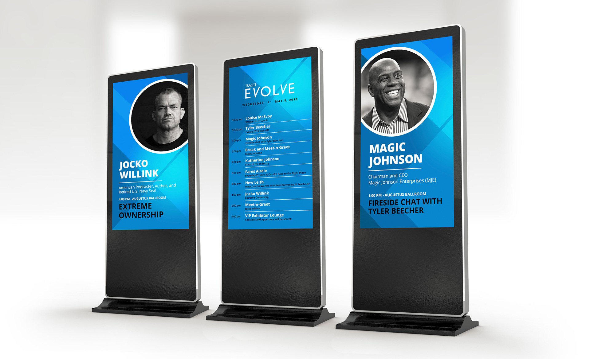Trace3 wanted to enhance the core brand elements for the Evolve Technology and Leadership Conference held annually in Las Vegas. From digital experiences, staging graphics, onsite displays and social engagement, the new brand commanded attention throughout the user experience. While staying true to the core strengths of the Trace3 brand, this year's visual identity continues to define the conference as the premier event in the IT Solution Provider industry.